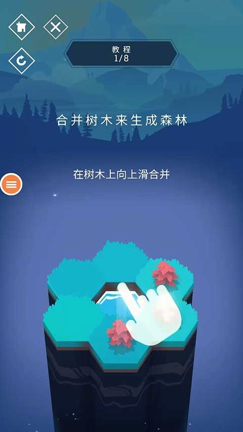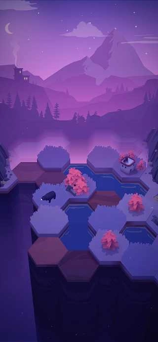 2. 与山为邻这一玩法,核心在于水与树的搭配,只需手指向上滑动,就能开启六边形地块的生成。