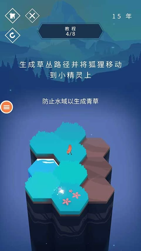 5、打造草地路径,引领狐狸前往小精灵所在区域,让狐狸与小精灵进行互动玩耍。