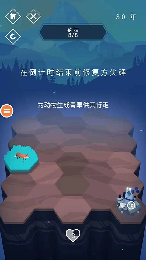 8、要记得在倒计时结束之前把方尖碑修好,否则会扣除一颗爱心,要是爱心全部扣完,游戏就会结束。