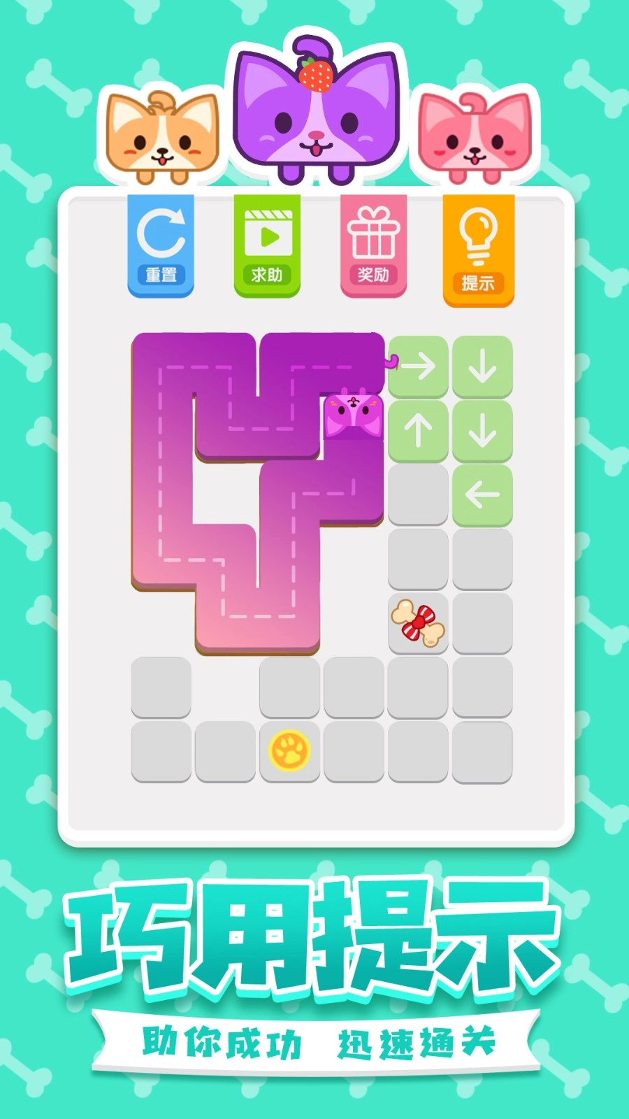 1、要是您一时想不到一笔画完格子的方法,游戏会给出提示,助您顺利通过关卡挑战。玩家在努力寻找合适路线的过程中,能从轻松的游戏内容里获得十足乐趣。而且,还有更多可爱的汪星人等您自由收集哦。