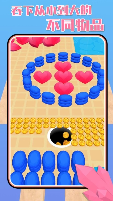 3、玩家要尽量吞噬各类物品,遵循大洞吞小洞原则,谁最终吞噬的物品数量最多,就能获得超高游戏分数。充分发挥自身实力,解锁趣味竞技,快速取胜并持续闯关。