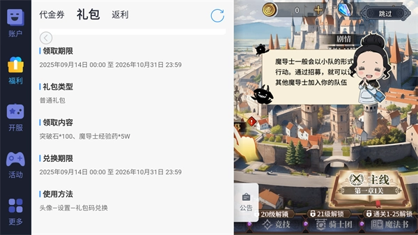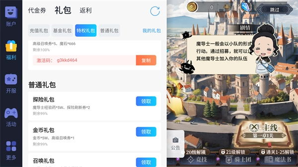 除此之外,在魔导英雄传说游戏中的福利也是极为丰富的,即玩家上线就能领取超强SSR角色,帮助玩家轻松击败所有敌人,更有各种代金卷可以免费领取,让所有玩家都可以享受到氪金大佬的待遇。