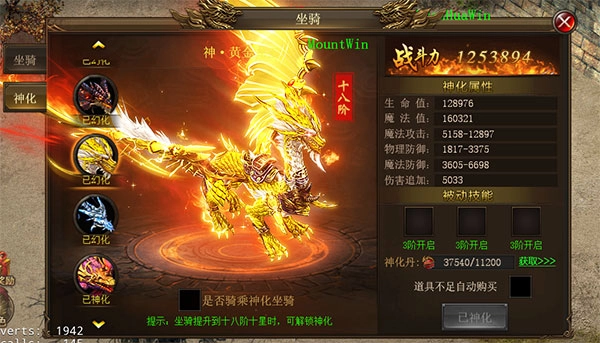 3. 当坐骑进行神化后,将会额外获取坐骑技能。
