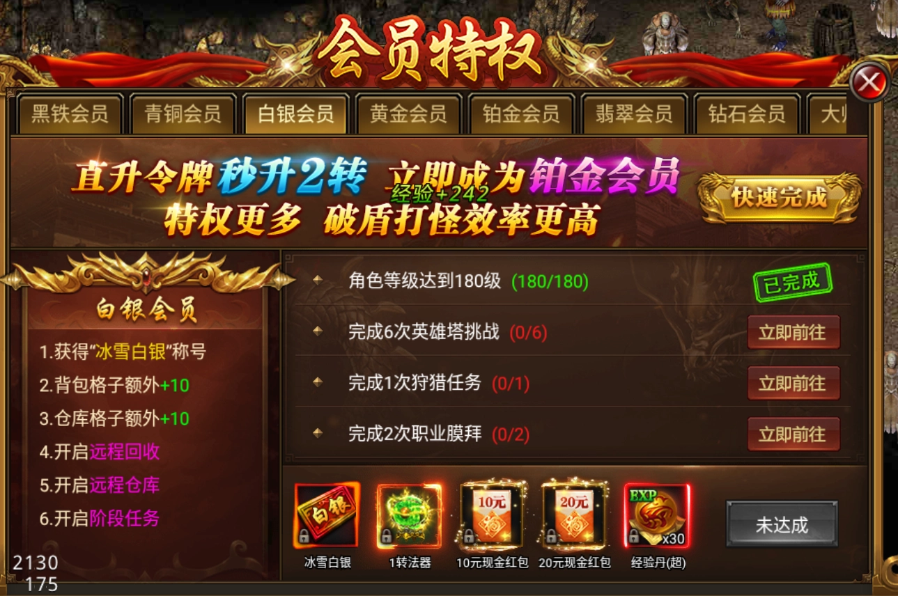 d. 若想快速推图,购买直升大礼包堪称绝佳之选。此礼包能让你省去众多任务,直接升至2转,同时解锁铂金会员与三位英雄,还可获取英雄加速秘籍。铂金会员所提供的三转法器以及这三位英雄,会极大地增强你的挑战实力,提升获取极品装备的几率。