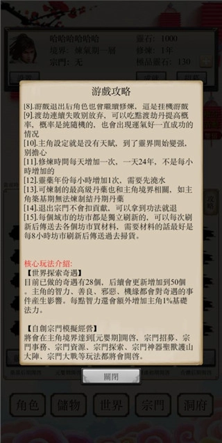 8、即便退出游戏,角色仍会持续修炼,这便是挂机游戏的特点。