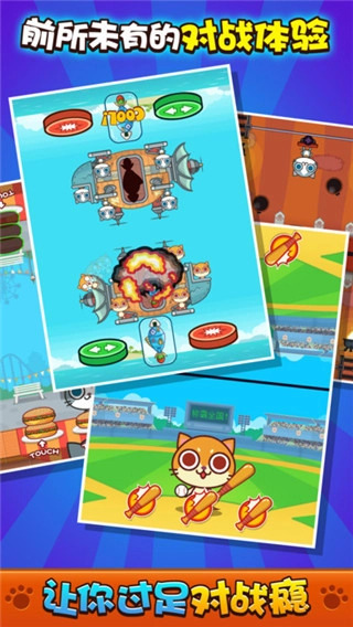 这款游戏还支持独创的神级AI模式与双人对战模式这两大玩法,任你自由挑战。你既能凭借灵活的反应能力与操作手速,和最强电脑猫咪一决高下;也能一键与好友组队,在线PK,从此告别战斗的孤单与无聊。