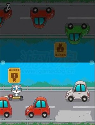 3、这一关卡相对简单,玩家仅需点击屏幕,就能改变角色的行进路线。在此过程中,持续留意前方的车辆与道路状况,操控角色避开车辆,不断向前行进即可。