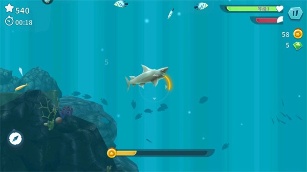4、长按屏幕能够让鲨鱼加速,但要留意别吃到不能吃的物品。