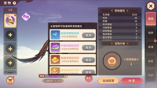 在等级方面侠士们是可以通过战斗和使用宠物经验药来提升宠物等级,在提升宠物等级后,宠物的各项属性也会有飞速的成长。