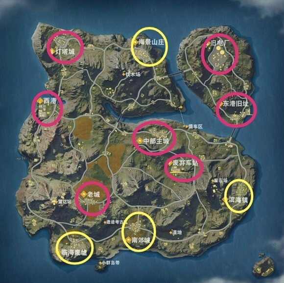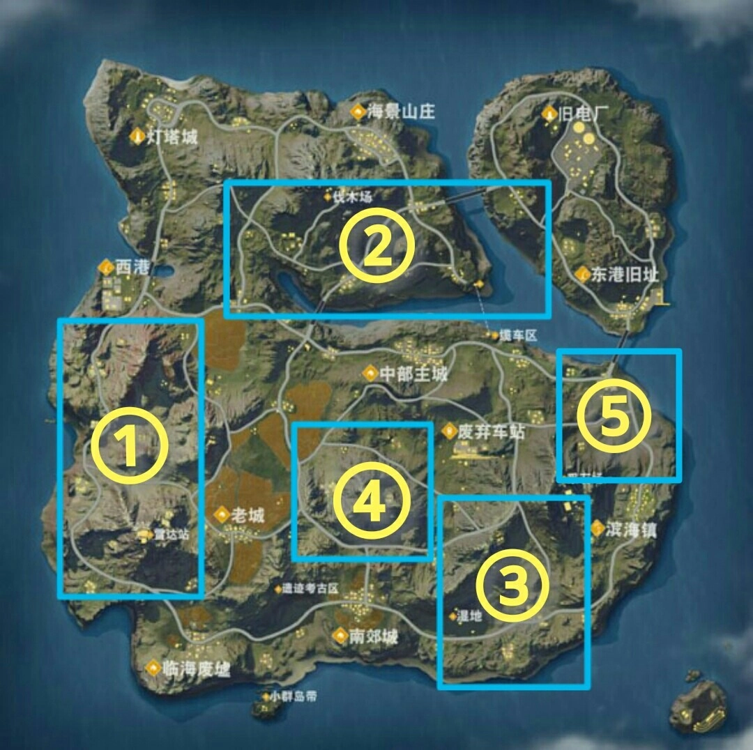 依据飞机出发位置以及飞行时间,应尽早挑选好自身的降落地点。别一味执着于建筑物密集之处,因为建筑物越多,遭遇敌人的可能性就越大,成功“吃鸡”的几率也就越小(当然,大神不在此列)。因此,本人通过统计某一地点降落人数的情况,总结出了如下图表: