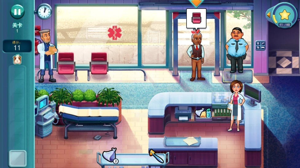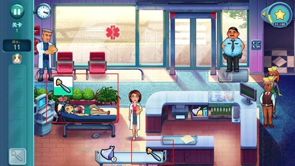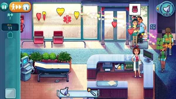 快速分配患者,您的分数将增添一份奖励。快速治疗患者,能为您的患者额外增加“心”。您可快速完成一个动作,从而赢得更多奖励!