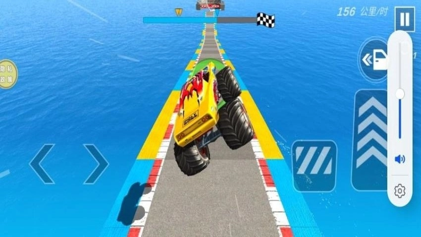 5、赛道上既无护栏,也没有其他安全设置,这对玩家的赛车技术是极大考验,遇到状况时玩家必须及时做出反应。