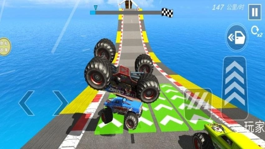 这款游戏的画面布局极为简约,在游戏里,你能看见蓝天与大海,体验高空赛跑的乐趣。