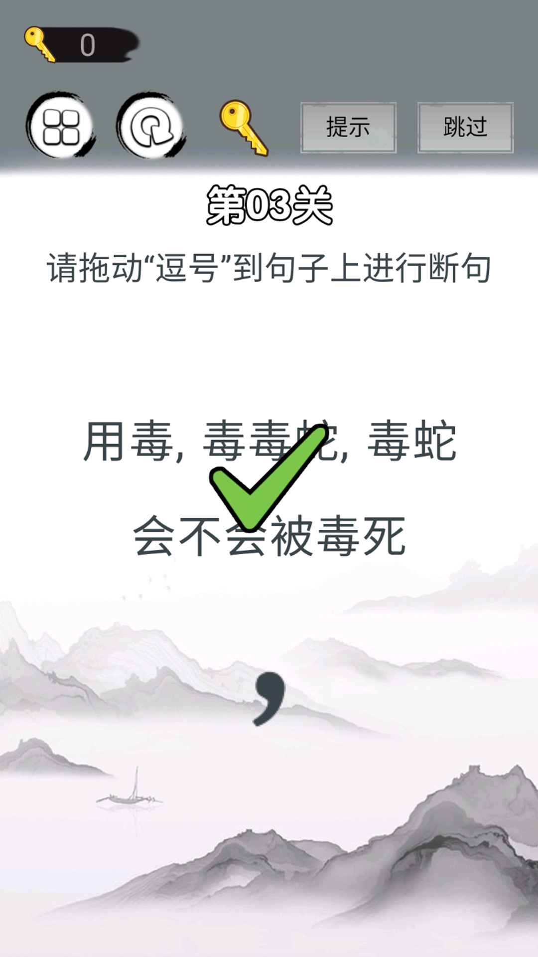 1. 用手指拖动进行逗号断句,凭借正确的断句解开谜题,各类神秘谜题等你来解答。