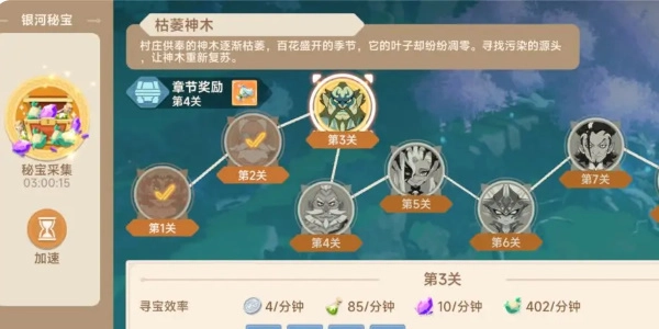 2、银河秘宝:这是获取晨星碎屑(该物品用于梦境之旅派遣)的方式,同时还能获取经验等奖励。银河秘宝的层数越高,挂机所获得的奖励也就越高。