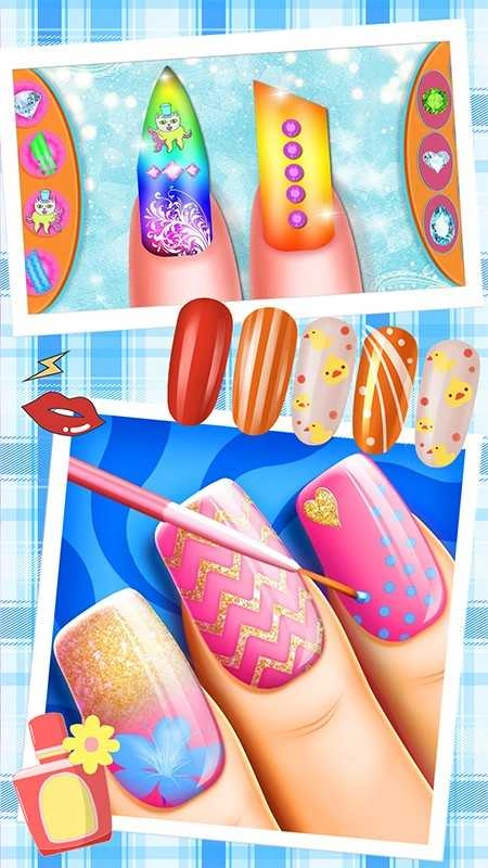 4. 在美甲店内,提供了丰富多样颜色的指甲油任你挑选。还能使用大量贴纸与钻石来装点你的指甲。