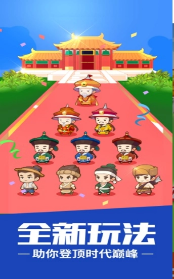 《我想当皇上红包版》是《我想当皇上》的全新版本,这是一款趣味性十足的模拟经营类游戏。它以卡通风格精心打造,有着Q版可爱的角色形象。在游戏里,玩家将扮演皇上,能够通过持续合成相同角色,升级出更高级的角色。游戏玩法简便易懂,感兴趣的玩家不妨来体验一番!
