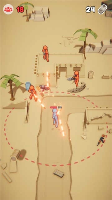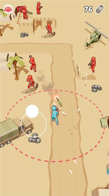 1、你脚下会出现一个红色虚线的小圆圈,这便是你的攻击范围,建议等更多敌人进入其中后再发起攻击。 2、玩家在发动攻击前,需灵活躲避来自敌人的攻击。要知道,各个方向都可能有不同的火力袭来,游戏过程十分刺激。