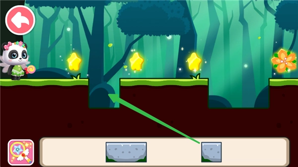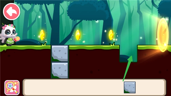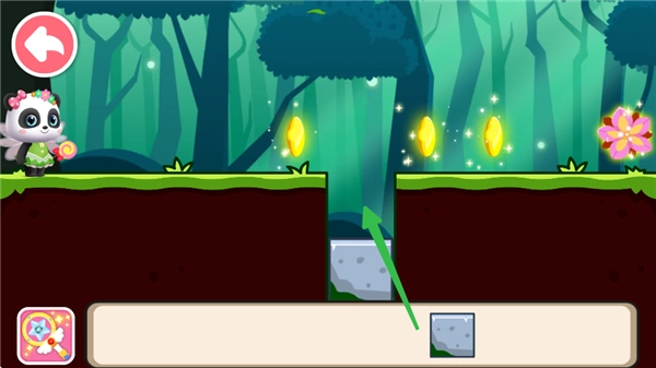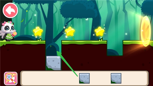 把石块挪到地面的缺口位置,拼接成一条完整道路,使小熊猫能够通行。