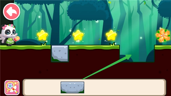 前方的道路地势颇高,几何块数量不足该如何解决呢?别忘记还有特殊装置:放置弹簧,借助弹力一跃而上。“咻”的一下,就能安全抵达高处啦。怎样合理运用道具,这可是对宝宝全局规划能力的一种考验哦。