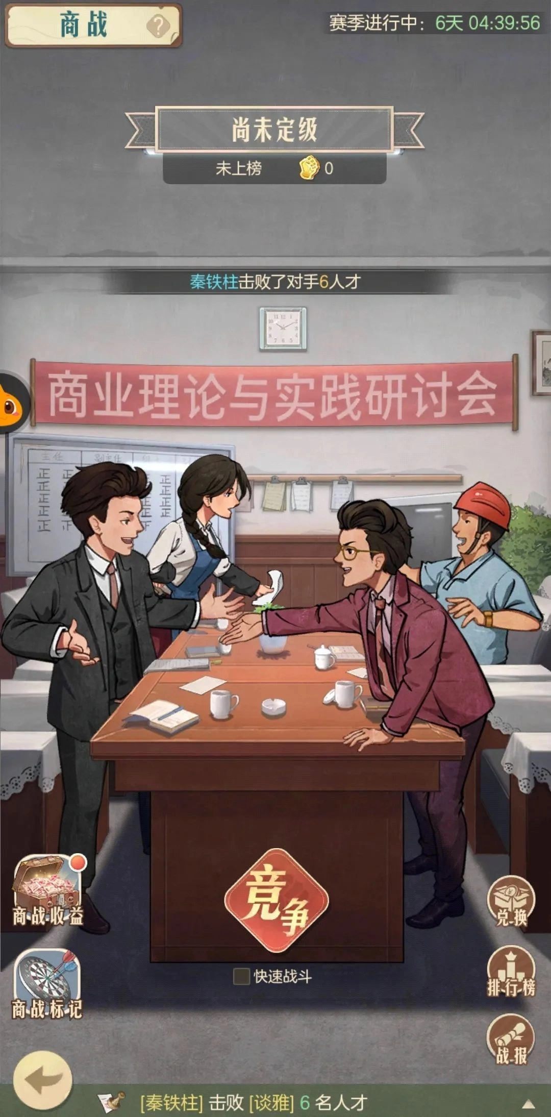 3、游戏开局刮刮乐会赠送一张人才引荐卡,这张卡十分关键,建议攒够两张后再进行兑换。因为前期用单张去兑换紫色物品,性价比非常低。至于第二张人才引荐卡,获取途径有抽取或者用引荐卡碎片合成。首次兑换优先推荐选择“郑经理”,选择他能够增加两次广场斗鸡活动的次数,相对而言性价比很高。