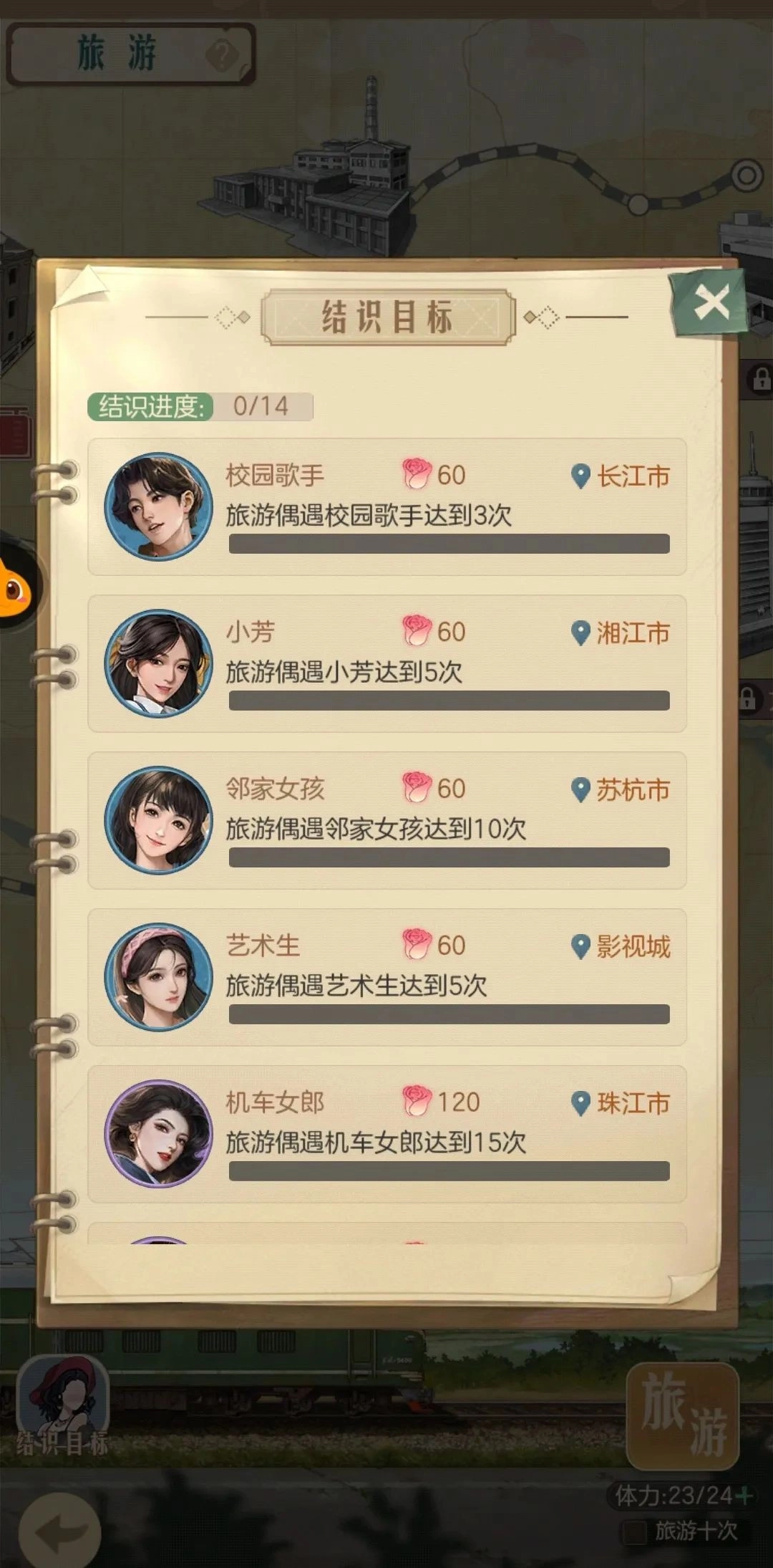 旅游不仅是结识艺人的关键方式,在旅游过程中触发随机事件,能够提升艺人的好感度。当好感度达到特定数值时,店长就能成功获得该艺人。店长可在旅游界面的【结识目标】处,查看获取每个艺人所需达到的具体好感度数值。