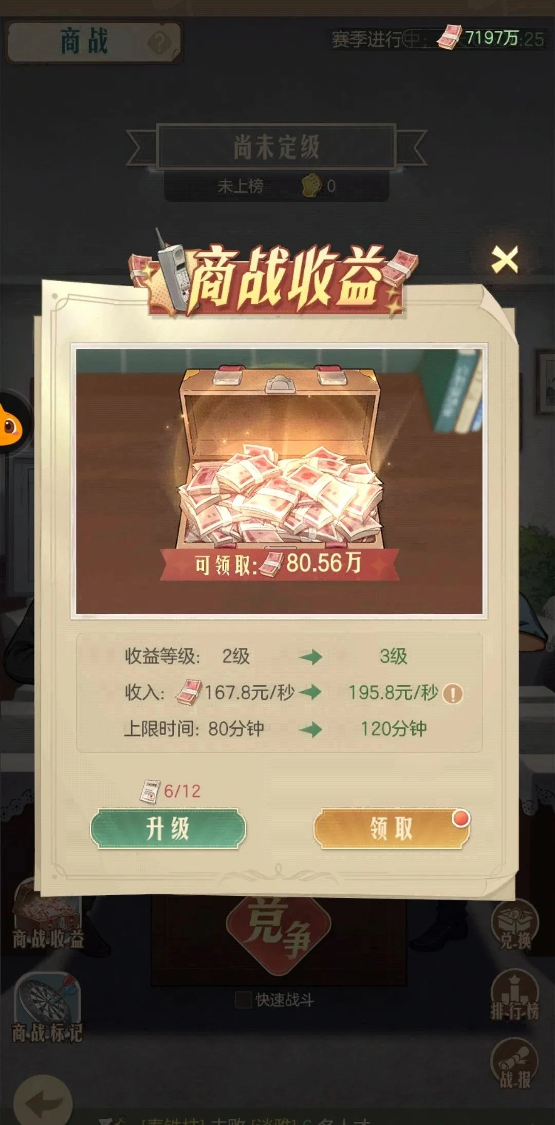 在游戏后期,商战收益是获取钞票的唯一主要来源。这是因为商战的钞票产出率由当前收入乘以收益等级加成得出,这个数值能够不断攀升。到了后期,商战的钞票产出率甚至能达到赚速的数倍之多(这就导致小时卡和分钟卡的效果大打折扣,毕竟它们仅能加速商铺的钞票获取,而占比极大的商战钞票却无法通过它们加速获取)。钞票作为游戏中的重要货币之一,所以提升商战收益等级对于整个商战系统而言至关重要。