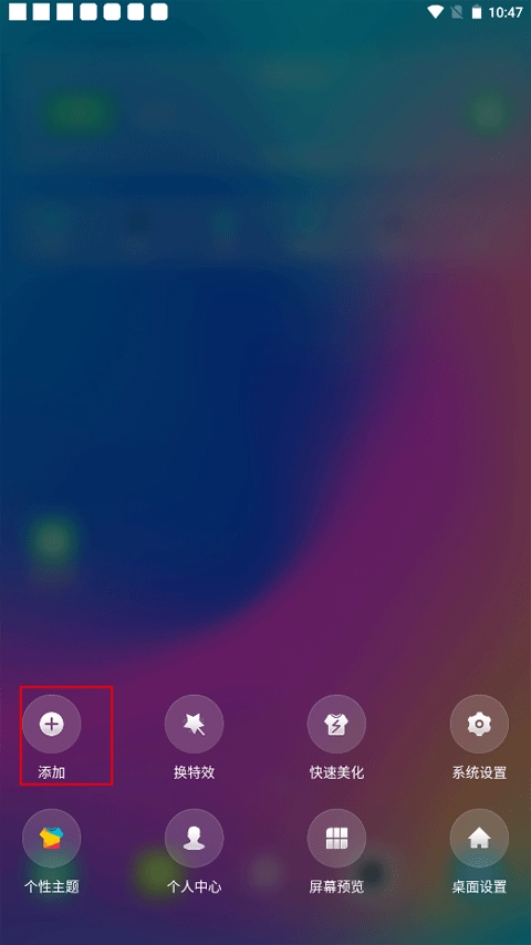 1. 长时间按住桌面的空白区域,此时下方会弹出几个功能选项,接着点击“添加”。