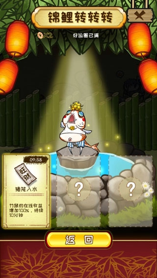 除此之外,在游戏里,除了要进行竹鼠的合成繁殖,还设有转锦鲤功能,助你时来运转。
