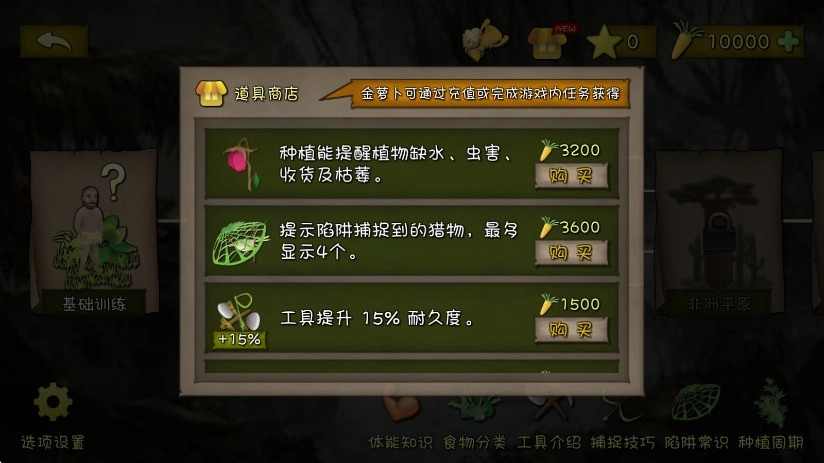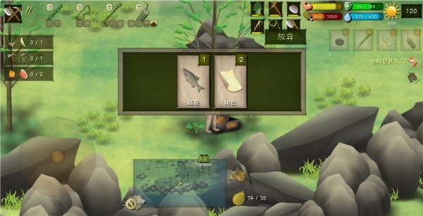 ③、工具制作顺序:先制作石斧,接着制作石刀。制造出竹叉和弓箭后,就能够去打青蛙、叉鱼、打鸟以及打兔子。
