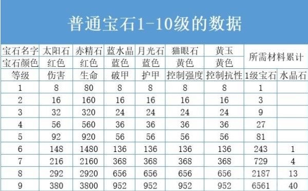 以下是各星级宝石所需能量的详细情况: