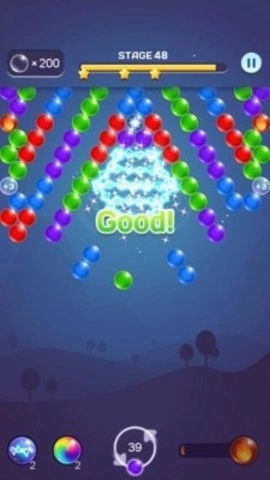 1、通过灵活操控炮塔,击破眼前不同颜色的泡泡,畅享轻松愉悦的过程。