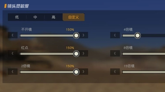 4、开火镜头的灵敏度共计6种,不开镜与红点设置为最大,其余的可依据个人手感进行调节,因为开镜状态下不太容易瞄准敌人。