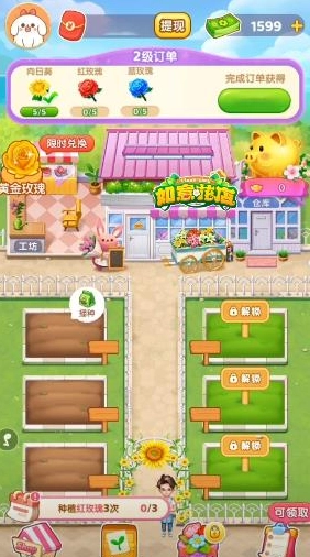 3、花店能够持续扩大规模,规模越大,就能带来更多样的玩法,你也会收获更丰厚的奖励,玩法丰富多样。