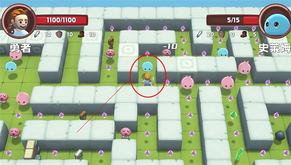 4、当遇到挡路的敌人时,即可发动攻击,展开战斗。敌人包括史莱姆、兔子史莱姆以及蘑菇。