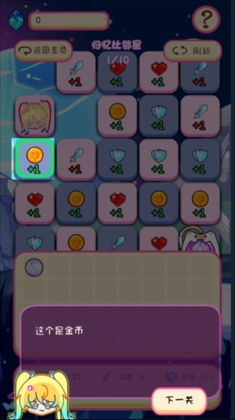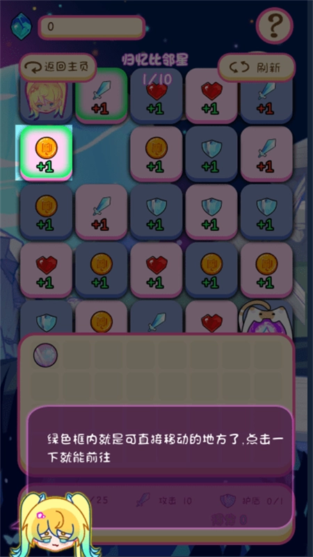 每个方格内均包含资源,其中有金币,还有攻击属性加成。