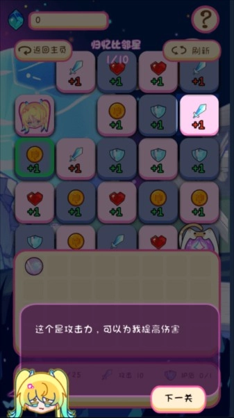 角色在初始状态下,各自拥有属性基础值、道具以及增长值,而且随着等级的提升,还能够不断解锁新技能。游戏结束后,进入你的游戏界面。
