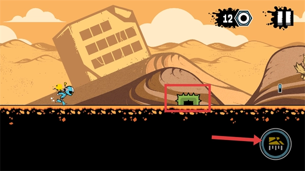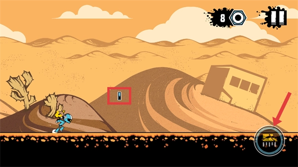 2. 在游戏进行时,要是碰到红框里的仙人掌,就点击屏幕右侧的跳跃按钮,越过障碍物。