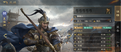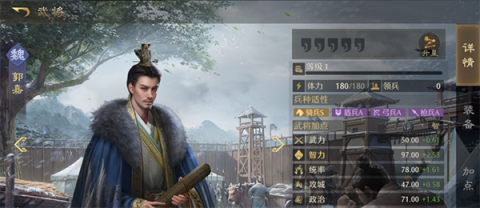 4、武将与配队指南:在武将体力条下方,以BAS标识每个武将对不同兵种的适应性数值,适应度越高,对应的属性值也就越高。武将升星需要消耗信物,升星之后,不仅属性会得到提升,在第二次和第四次升星时,技能效果的增强尤为显著。