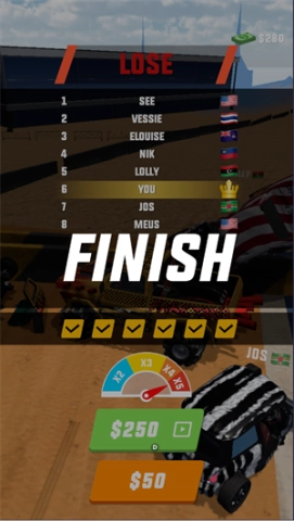 1在这款游戏中,胜利并非仅意味着夺得第一名,而是凭借精准的撞击去摧毁其他赛车,营造出惊险刺激的连锁车祸效果,这绝对会带给你超乎想象的快感。
