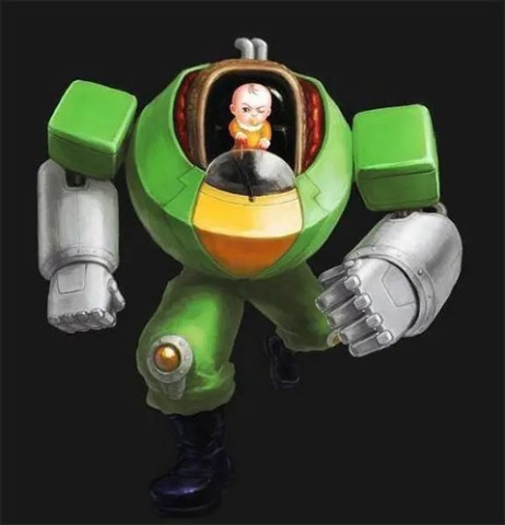 瞧,这个高智能婴儿,才2岁,身高不过57厘米,体重仅有9公斤,嘴里叼着奶嘴的模样可爱得让人忍不住笑出声来。别看他自身没有什么攻击力,可他驾驶的高智能机器那战斗能力却相当引人注目。他的动作灵活性欠佳,然而借助机甲的强大力量,攻击力堪称惊人,更有意思的是,他还有“抓人”这一绝招,设计得极为细腻,真是个充满趣味的角色。