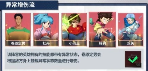 3、阵容为定男、牡丹、小阎王、铃驹、冻矢,此组合适合偏好控场的玩家,借助技能优势把控全局。