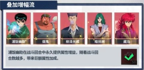 2、浦饭幽助、烟鬼、柳泽光成、暗抚树以及藏马的组合,能产生强大的团队协作效果,其策略玩法简直妙趣横生。