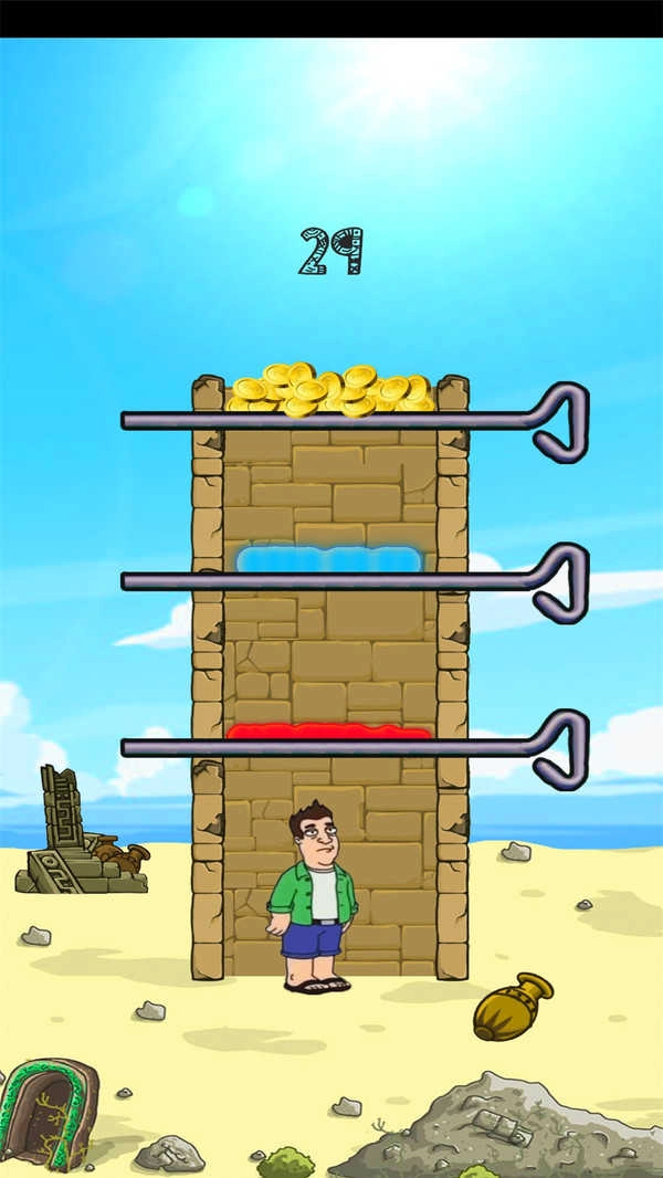 《拉针逃脱》是一款妙趣横生的闯关游戏。游戏中,一位大叔被困在一所房子里,房间内通过拉针分隔着各类物品。玩家拉动拉针,大叔就能获取相应物品,然而部分物品存在致命危险。这就需要玩家悉心抉择,助力大叔获取其中的金银财宝。