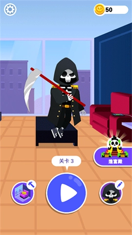 《死神来了模拟器(DeathIncoming)》是一款极具趣味的卡通风格休闲闯关类游戏。在游戏中,玩家将扮演死神,开启别具一格的玩法探索与挑战之旅。玩家的核心任务是巧妙借助场景信息以及各类道具,进行精准操作,从而击杀目标并收割灵魂。每个关卡都设有特定的收割条件,唯有满足这些条件,玩家方可顺利进入下一关,这无疑对玩家的规划能力与操作技巧提出了较高要求。玩家需全神贯注地留意场景风格与地形特点,进而制定出合理策略。游戏中多样的角色装扮,极大地丰富了游戏体验,每一次更换服装,玩家都能收获全新的感觉与挑战。除此之外,游戏还准备了丰富的资源道具,快来加入体验吧!