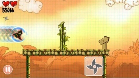 2. 首先拿起三个白色飞镖,使忍者变身为飞镖,进而展开冲刺。