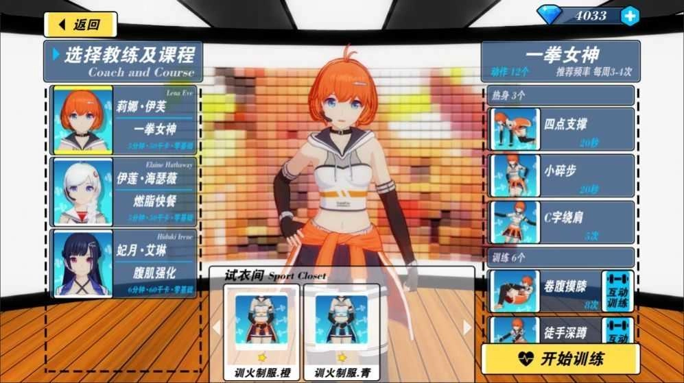 快来体验一款独具清新卡通风格的二次元互动健身模拟游戏!在游戏里,你能与美少女一同挥洒汗水。跟随美少女健身教练的节奏,持续锻炼身体,塑造健康强壮的体魄。随着锻炼的深入,还能不断解锁更多风格各异的教练以及丰富多样的训练内容,别再犹豫,赶紧开启这场有趣的健身之旅吧!