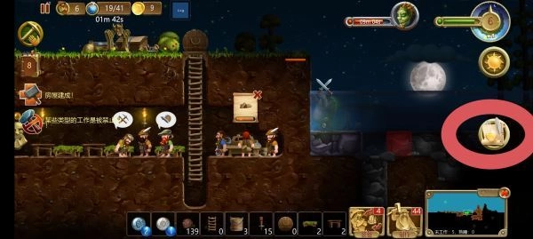 请注意,在建房子时,务必确保没有缺口。像图中所示,若两层土都被挖掉,或者上方的入口没有密封好,图腾出现亮红点的情况,就意味着房子尚未建好。此时,矮人不会上床睡觉,即便怪物来袭,它们也不会往房子里跑,而且还会一直提示“我们的房子在哪?”