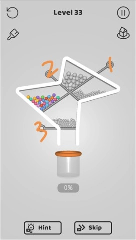 别针大师这款游戏,是由Popcore GmbH精心开发的物理类益智休闲游戏。它的玩法极为简单,轻松上手,玩家只需轻轻动动手指,就能完成全部操作。在游戏里,玩家得运用一些物理知识,把小球聚集起来。当小球从上方掉落时,要巧妙借助别针躲开各类道具。特别要留意的是,千万别在过程中让小球数量减少。一旦成功将小球送进瓶口,就算顺利通关。游戏采用卡通风格的画面,充满小清新的感觉,趣味十足,还特别解压。