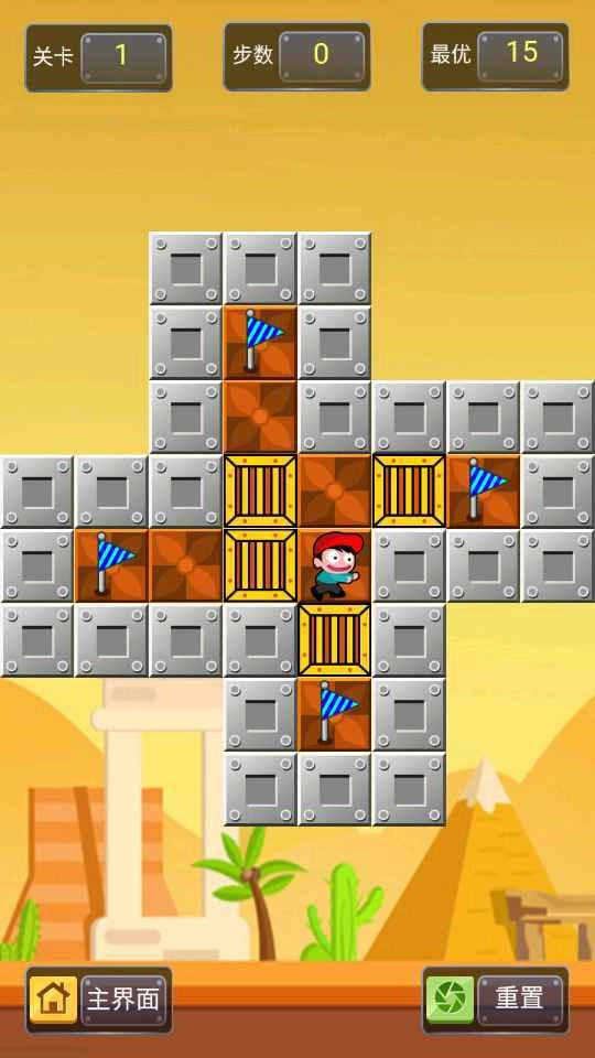 3、箱子摆放杂乱无章,而规则是明确正确的。发挥你的奇思妙想,把箱子推到正确的位置上。